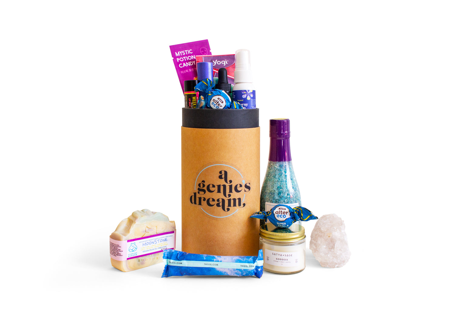 A monthly mystical subscription that curates 5-7 full-sized products includes eco-friendly packaging,...