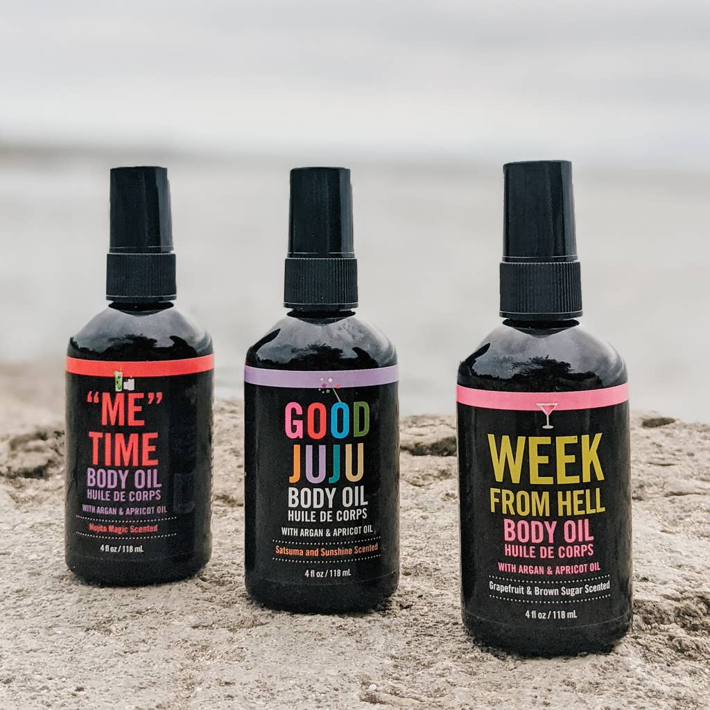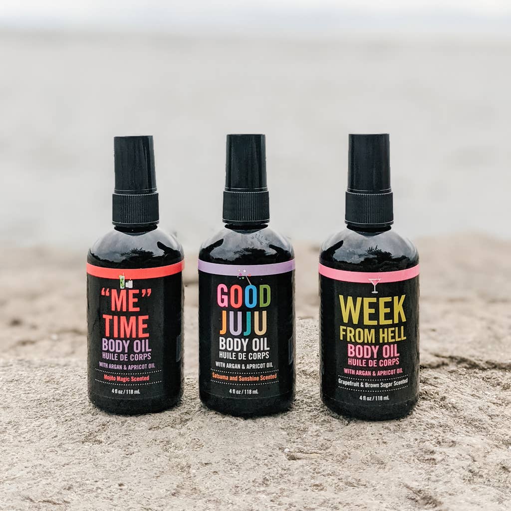 Super Silky and instantly absorbing! Made with Sunflower, Apricot, Argan, Avocado, Jojoba, and Sweet Almond oils. Satsuma Mandarin scented.