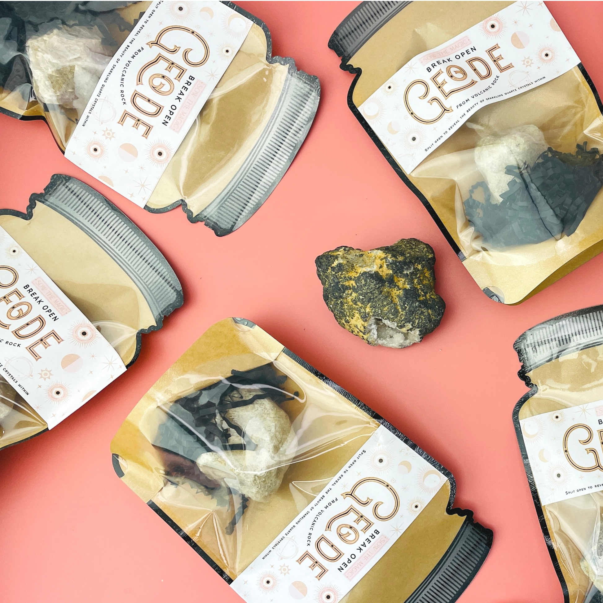 This Break Open Geode is packed with magical gemstone treasures! Gently split the geode open to reveal the beauty of sparkling quartz crystals within because “it’s what’s on the inside that counts.”